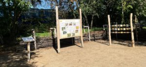 Die Begeisterung war allgemein groß, so dass Herr Kasimir, Leiter der Bad Vilbeler Grünpflege, nach dem Hessentag den Pfad mit weiteren Elementen schmücken ließ. Eine Benjeshecke, ein Lesesteinhaufen, entsprechende Erklärtafeln, zwei Holzbienen zum Draufsitzen und ein Apfelbaum kamen noch dazu.